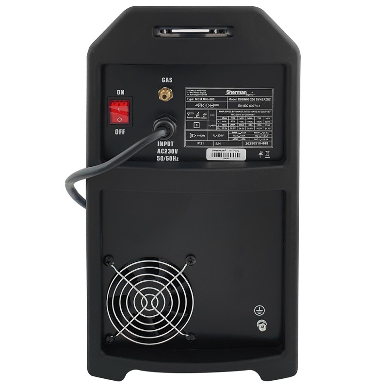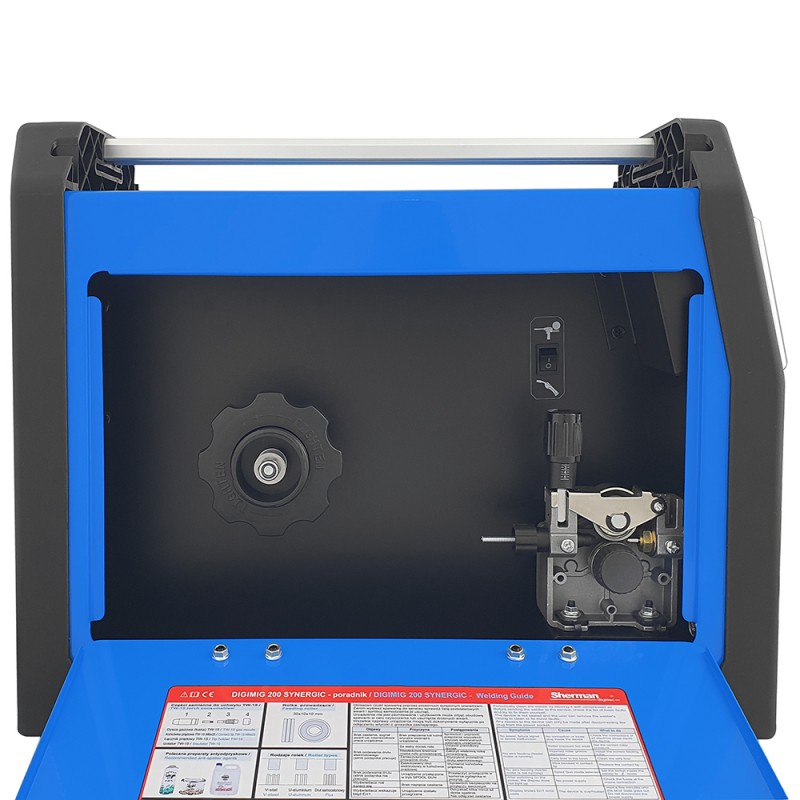 Synergiczna spawarka DIGIMIG 200 SYNERGIC to innowacyjne urządzenie przeznaczone do spawania ręcznego stali i metali kolorowych. Umożliwia spawanie metodami MMA (elektrodą otuloną), TIG Lift, oraz MIG/MAG. Dzięki zmianie polaryzacji urządzenie pozwala spawać metodą MIG/MAG z zastosowaniem zarówno standardowych drutów w osłonie gazów ochronnych jak i samoosłonowych drutów proszkowych.