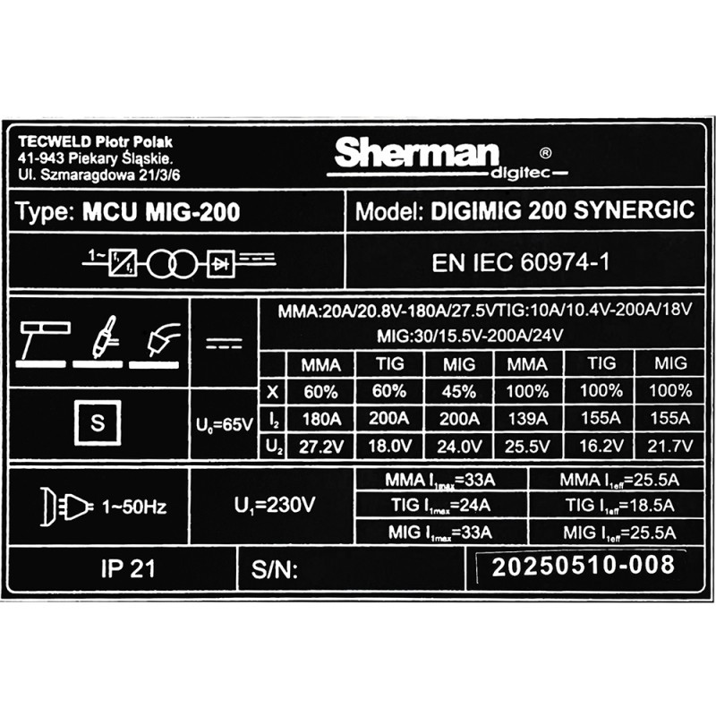 Tutaj można zobaczyć prezentację spawarki Sherman DIGIMIG 200 SYNERGIC.