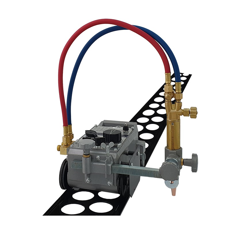 Przecinarka szynowa SNAIL 1P z jednym palnikiem i płynnie sterowanym napędem elektrycznym przeznaczona jest do cięcia tlenem pasów oraz kół z blach wykonanych z konstrukcyjnych stali węglowych i niskostopowych o grubości 5 – 100 mm pod kątem 0°-45°. Na wyposażeniu znajduje się prowadnica szynowa o długości 1,8m. Dzięki zastosowaniu palnika bezsmoczkowego, można użyć dysz acetylenowych lub propanowych, w zależności od stosowanego gazu palnego. Palnik współpracuje z dyszami blokowymi typu PNME oraz ANME kompatybilnymi z dyszami firmy BOC.