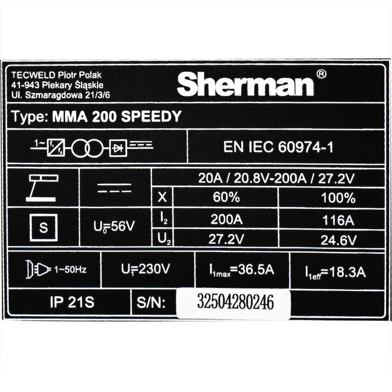 Spawarka inwertorowa sherman mma 200 Speedy służy do spawania ręcznego prądem stałym stali konstrukcyjnych elektrodami otulonymi (metoda MMA). Umożliwia również spawanie metodą TIG z zajarzeniem łuku przez potarcie (po zastosowaniu dodatkowego uchwytu). Jest to urządzenie inwertorowe, produkowane z najbardziej zaawansowanych technologicznie podzespołów wykonanych w technologii IGBT. Spawarka inwertorowa sherman mma 200 jest wyposażona w automatyczne funkcje HOT START ułatwiającą zajarzanie oraz ANTI STICK ułatwiającą oderwanie elektrody w przypadku przyklejenia i zabezpieczającą przed uszkodzeniem urządzenia. Spawarka znajduje zastosowanie w pomieszczeniach zamkniętych lub zadaszonych, nienarażonych na bezpośrednie działanie czynników atmosferycznych. Przeznaczona jest do prac dorywczych oraz amatorskich.