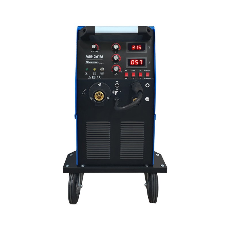 Spawarka MIG 261M to sprzęt drugiej generacji wykonany w technologii IGBT. Służy do spawania ręcznego stali i metali kolorowych w osłonie gazów ochronnych (metoda MIG/MAG) oraz elektrodą otuloną (metoda MMA). Może być także stosowany do spawania bezgazowego przy użyciu drutu proszkowego. Urządzenie posiada również możliwość spawania drutami o średnicy szpuli 100mm przy użyciu uchwytu Spoolgun.