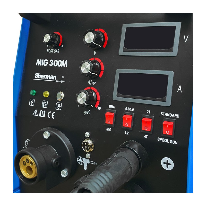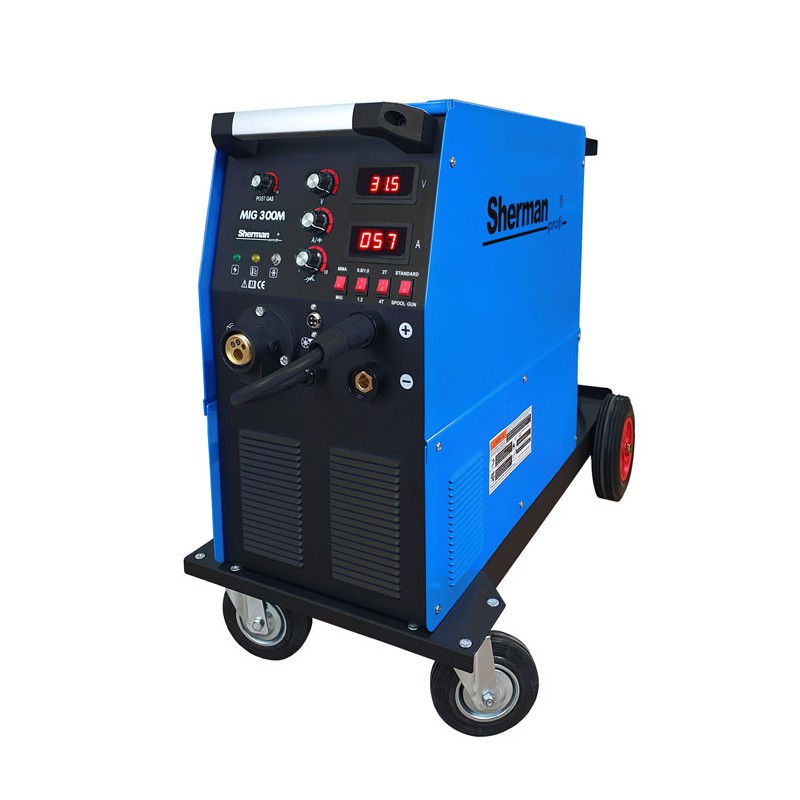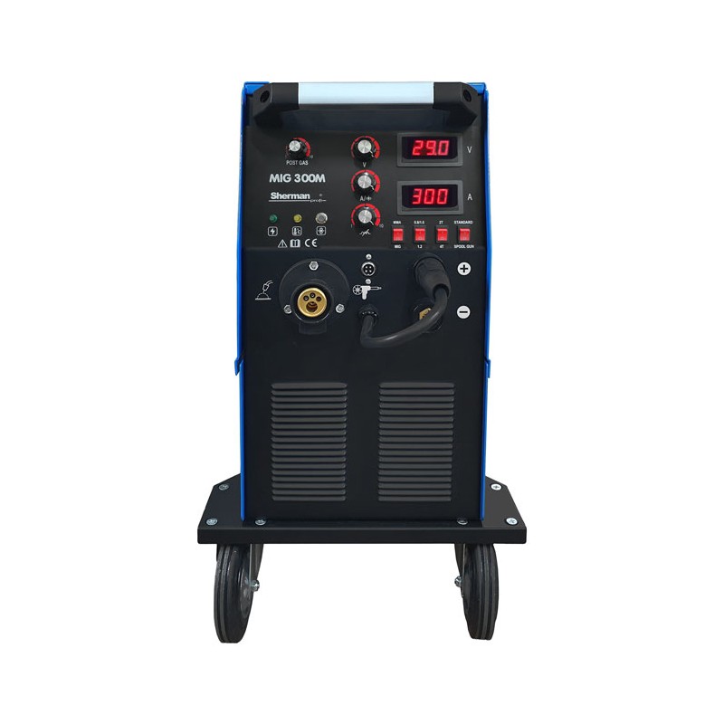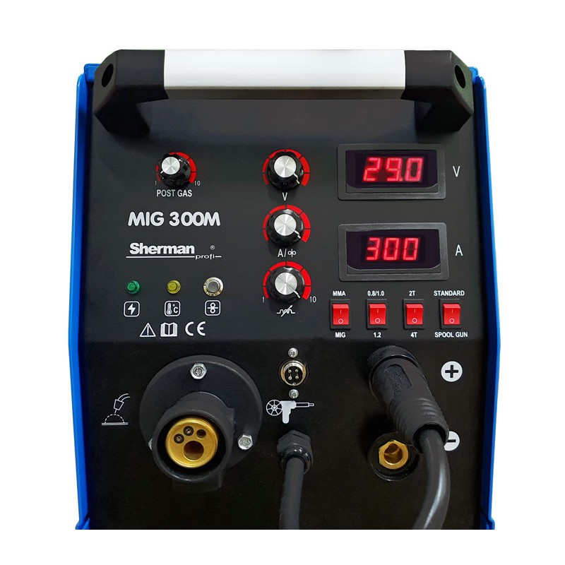 Spawarka MIG 300M to sprzęt drugiej generacji wykonany w technologii IGBT. Służy do spawania ręcznego stali i metali kolorowych w osłonie gazów ochronnych (metoda MIG/MAG) oraz elektrodą otuloną (metoda MMA). Może być także stosowany do spawania bezgazowego przy użyciu drutu proszkowego. Urządzenie posiada również możliwość spawania drutami o średnicy szpuli 100mm przy użyciu uchwytu Spoolgun.
